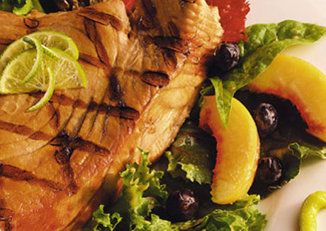 This vinaigrette is best made a day ahead to allow the flavours time to harmonize. The wild greens and fruit can be changed depending on availability.